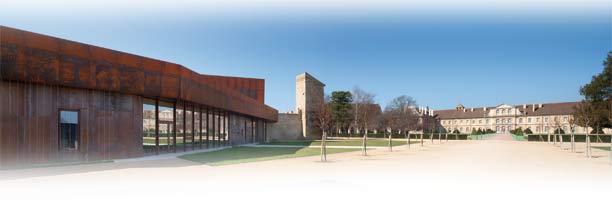 La façade est constituée de plaques d’acier auto-patinables à la surface brute, posées en vêture sur la structure en béton. Les menuiseries aluminium à rupture de pont thermique teinte “Rouille natif” se marient à l’acier pré-oxydé pour former un ensemble cohérent avec les pierres irrégulières de l’enceinte médiévale. Ainsi, l’architecte est parvenu à concilier le neuf et l’ancien en conférant à sa réalisation une identité propre sans pour autant éclipser les bâtiments existants.