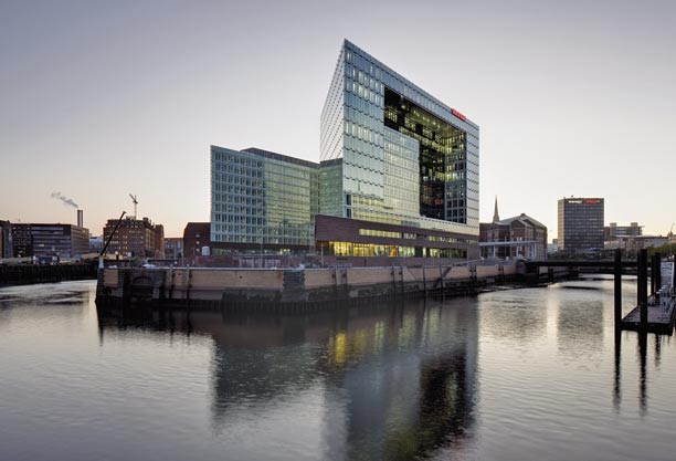 Der Spiegel, l’hebdomadaire d’investigation le plus in­fluent d’Allemagne, a inauguré tout récemment son nouveau siège à Hambourg. Sorti de l’imagination du cabinet d’architectes Henning Larsen Architects, le nouveau bâtiment trône majestueusement à l’entrée de la nouvelle zone urbaine HafenCity, un projet ambitieux de réaménagement du vieux port entrepris par la ville de Hambourg il y a quelques années. Situé dans le quartier très huppé « Ericus Contor », le nouveau bâtiment fait partie d’une composition architecturale articulée autour de deux volumes distincts, le siège du Spiegel et un immeuble de bureaux, donnant sur le fleuve et baignés par le soleil.